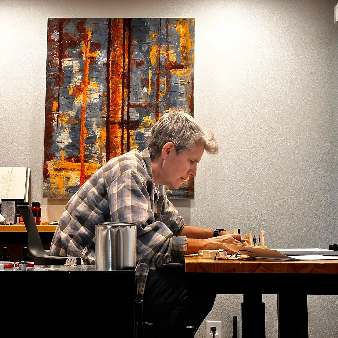 I am a 57 year-old painter/artisan born in the Pacific Northwest. I have been a painter, candlemaker, bass player, dance instructor and digital artist; was a dive instructor in Hawaii, rescued horses in Vermont and owned a horse ranch in California. In 2023, I left a 20-year career in corporate leadership. I now find myself irresistibly creating art, a painter found. I have returned to the PNW where I live on a river with my wife and standard poodle.